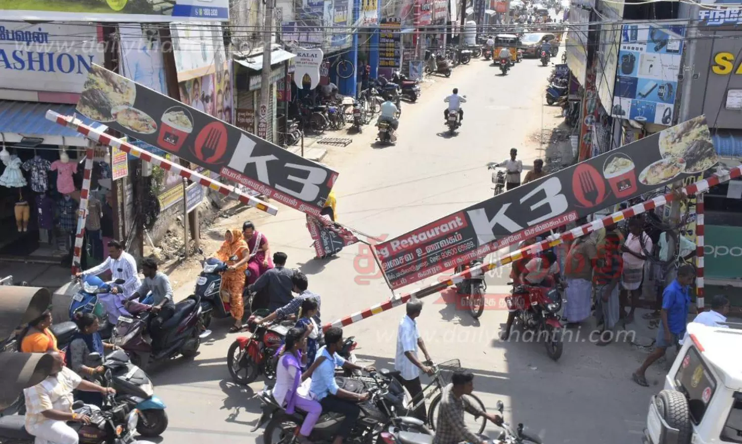 இதில் அந்த உயர்மட்ட தடுப்பு திடீரென உடைந்து கீழே விழுந்துள்ளது. அப்போது அந்த பகுதி முழுவதும் பலத்த சத்தம் எழுந்துள்ளது. இதனால் அங்கிருந்த பொதுமக்கள் அலறி அடித்து ஓடியுள்ளனர். ஆனாலும் அதிர்ஷ்டவசமாக யாருக்கும் எந்தவித காயமோ, வேறு சேதம் ஏற்படவில்லை. இதுகுறித்து அப்பகுதியைச் சேர்ந்த வர்த்தகர்கள் கூறுகையில், போக்குவரத்து நெரிசலை தவிர்க்கும் வகையில் அமைக்கப்பட்ட தடுப்புகளை அடிக்கடி ஏதாவது ஒரு கனரக வாகனம் ஊருக்குள் புகுந்து உடைத்து விடுகின்றன. இதுபோன்ற விபத்துகளை ஏற்படுத்தும் வாகனங்களை பறிமுதல் செய்து உரிய நடவடிக்கை எடுக்க வேண்டும் என்றனர்.