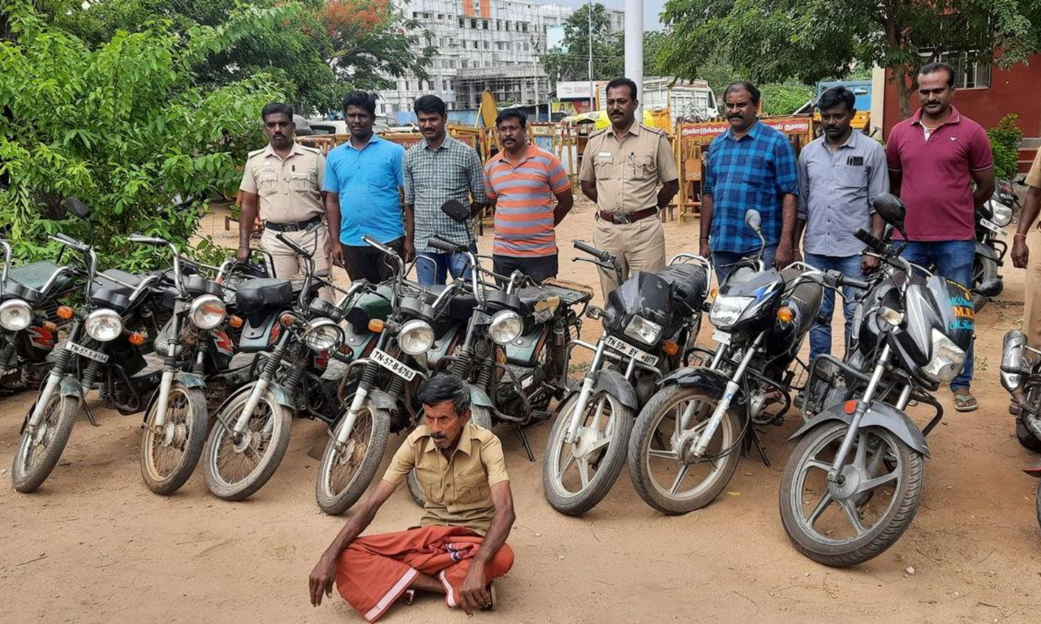 இதனால் திருட்டு வாகனங்களை கிராமங்களில் விவசாயிகள், தொழிலாளர்கள், பால் மற்றும் பூ வியாபாரிகளிடம் குறைந்த விலைக்கு விற்று இருக்கிறார். இதேபோல் கடந்த சில ஆண்டுகளுக்கு முன்பும் மோட்டார் சைக்கிள்களை திருடிய வழக்கில் அவர் கைது செய்யப்பட்டார். தற்போது 2-வது முறையாக சிக்கி இருக்கிறார் என்று கூறினர்.
