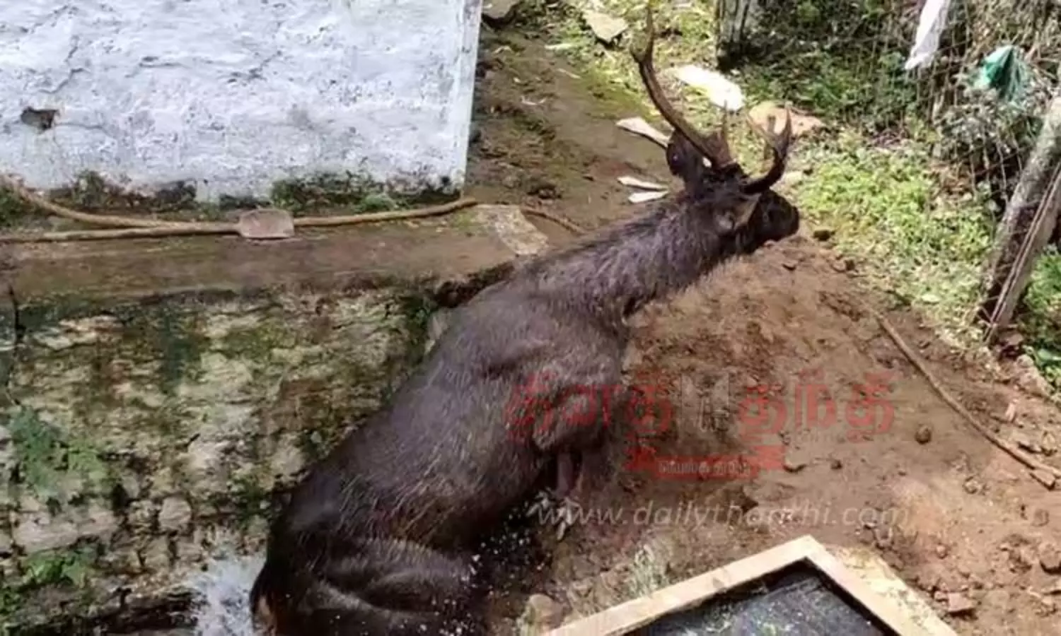 தண்ணீர் தொட்டியில் விழுந்த கடமான் உயிருடன் மீட்பு