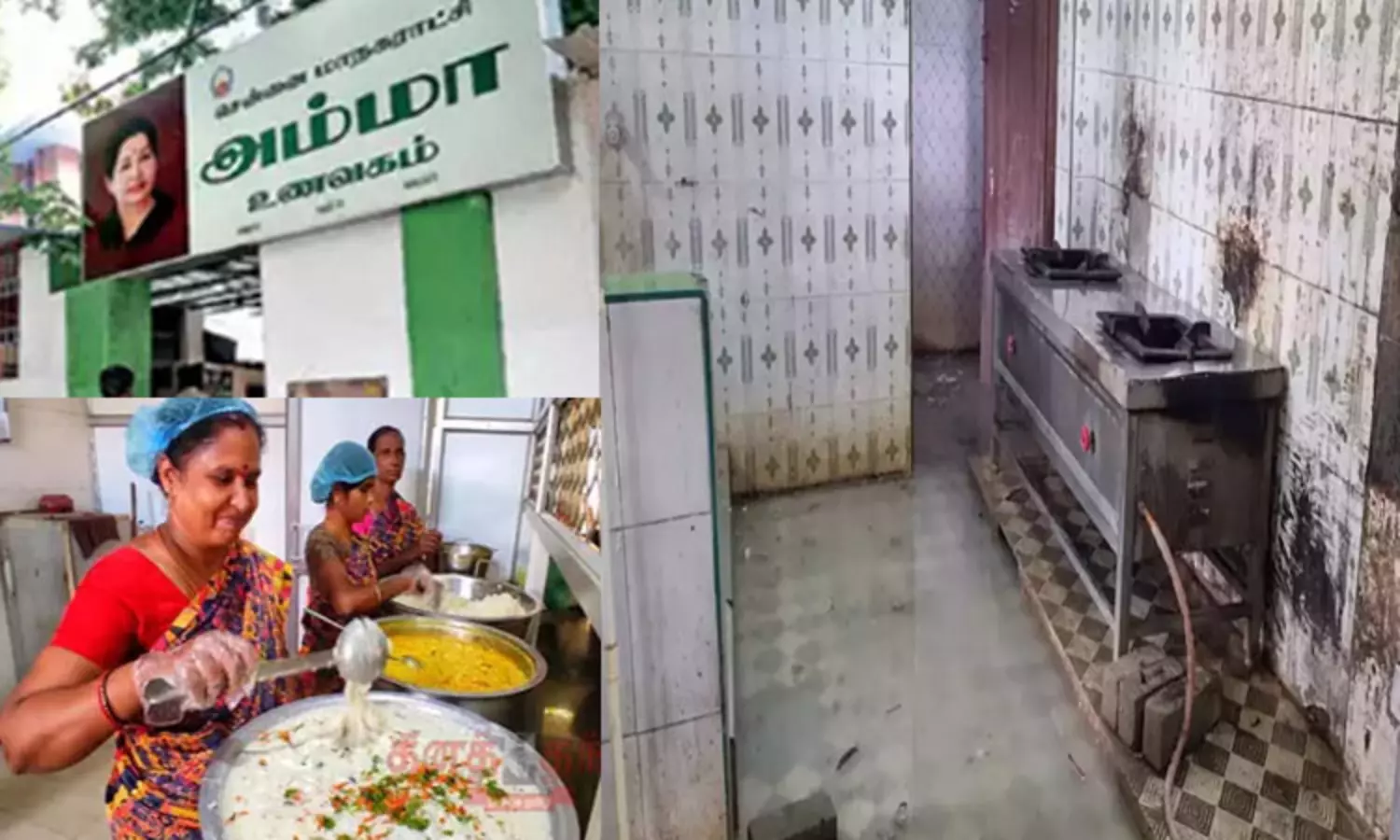 அம்மா உணவக சமையலறையில் குளம் போல் தேங்கியுள்ள கழிவுநீர்