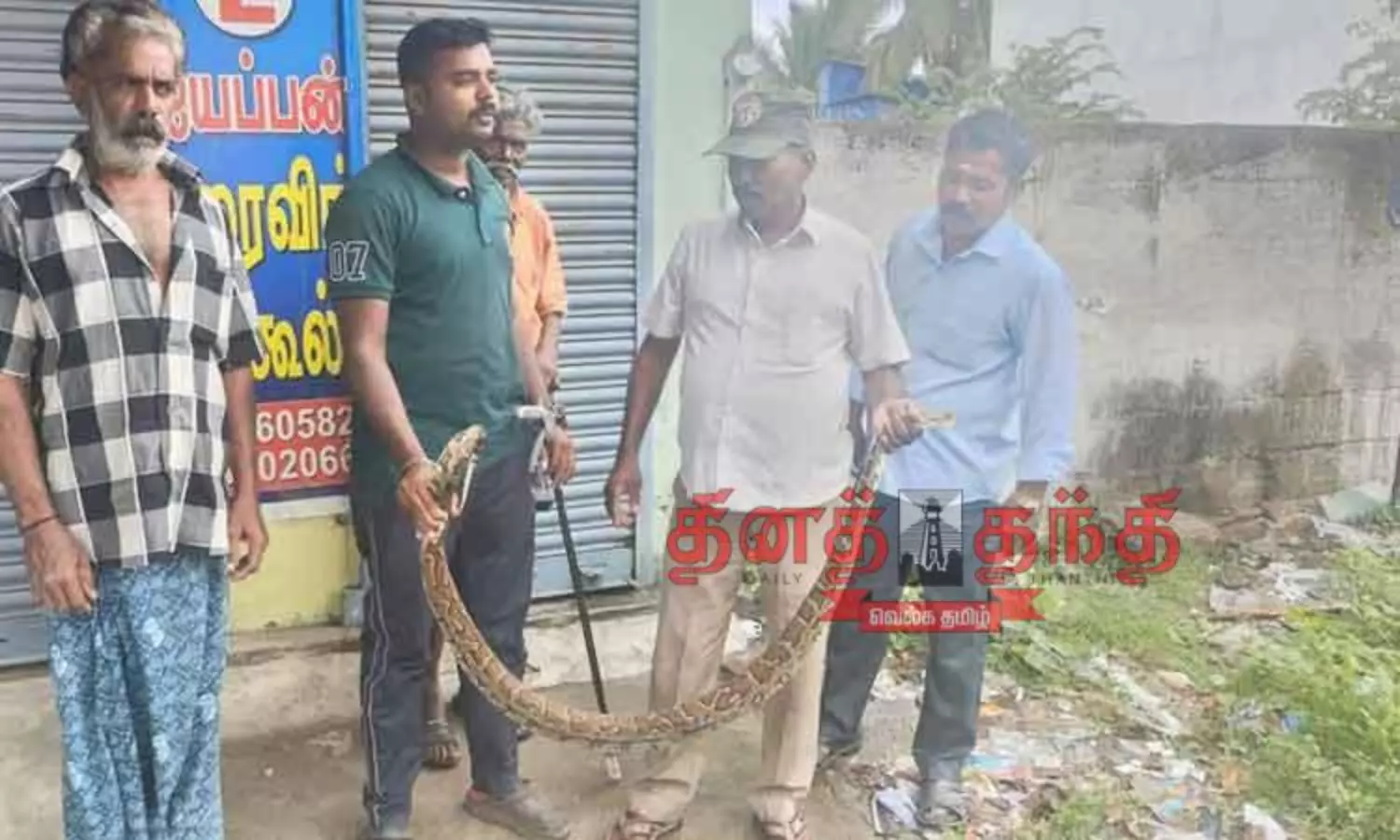 வெள்ளமடம் அருகே உள்ள லாயம் விலக்கு பகுதியில் சாலையோரம் ஒரு மலைப்பாம்பு ஊர்ந்து சென்றது. இதை அந்த வழியாக சென்றவர்கள் பார்த்து நாகர்கோவில் வனத்துறைக்கு தகவல் தெரிவித்தனர். மாவட்ட வன அலுவலர் இளையராஜா உத்தரவின்பேரில் வன ஊழியர் துரைராஜ், வேட்டை தடுப்பு காவலர் சிவா ஆகியோர் விரைந்து வந்து மலைப்பாம்பை பிடித்தனர். பிடிபட்ட மலைப்பாம்பு சுமார் 6 அடி நீளம் உடையது என்று வனத்துறையினர் தெரிவித்தனர். பின்னர் அந்த பாம்பு அடர்ந்த வனப்பகுதியில் விடப்பட்டது.