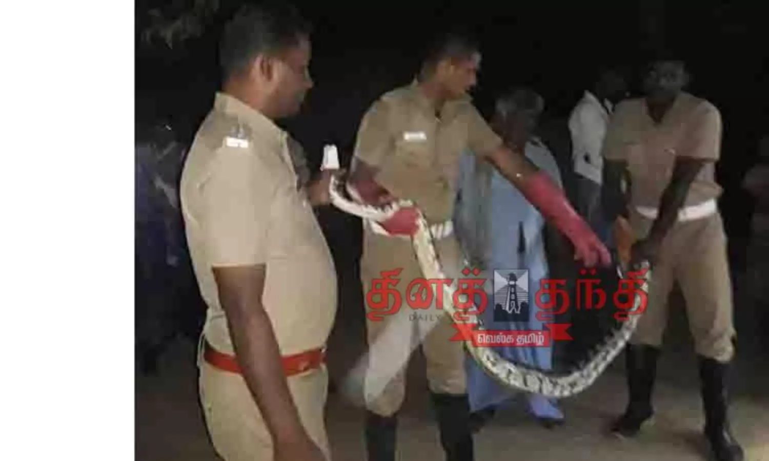 அன்னவாசல் அருகே உள்ள மதியநல்லூர் கள்ளம்பட்டி குடியிருப்பு பகுதியில் மலைப்பாம்பு ஒன்று புகுந்து அச்சுறுத்துவதாக அப்பகுதியினர் சிப்காட் தீயணைப்பு நிலையத்திற்கு தகவல் அளித்தனர். அதன் பேரில் தீயணைப்பு நிலைய அலுவலர் சின்னக்கண்ணு தலைமையிலான வீரர்கள் சம்பவ இடத்திற்கு விரைந்து சென்று அந்த மலைப்பாம்பை லாவகமாக பிடித்து சாக்குப்பையில் அடைத்தனர். பின்னர் பிடிபட்ட மலைப்பாம்பை வனத்துறையினரிடம் ஒப்படைத்தனர். அதன்பின்னர் வனத்துறையினர் அந்த மலைப்பாம்பை நார்த்தாமலை காப்புக்காட்டில் பத்திரமாக விட்டனர்.
