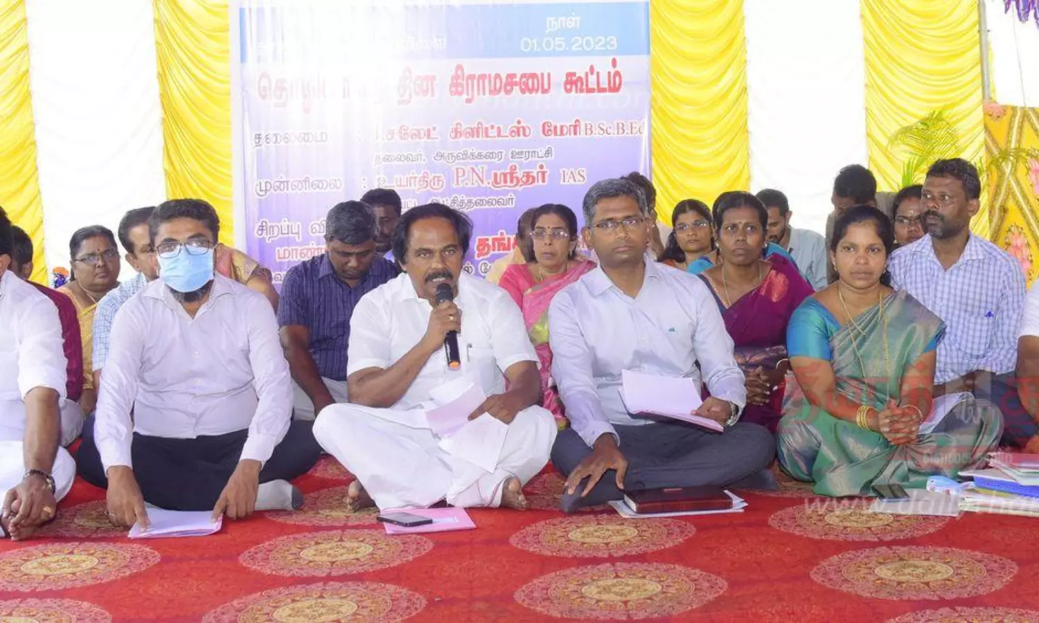கூட்டத்தில் பல்வேறு திட்டம் குறித்து விவாதிக்கப்பட்டது. தொடர்ந்து 'எங்கள் கிராமம், ஏழில்மிகு கிராமம்' என்ற உறுதிமொழியை அரசு அலுவலர்கள், பொதுமக்கள் ஏற்றுக்கொண்டார்கள்.