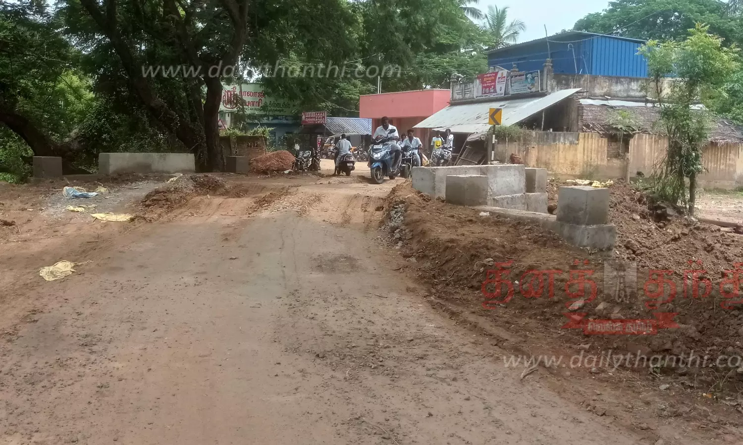 புதிதாக கட்டப்பட்ட தரைப்பாலத்தின் மேல்பகுதியில் மணல் கொட்டப்பட்டு வாகனங்கள் சென்று வர அனுமதிக்கப்பட்டது. என்றாலும், மணல் கொட்டப்பட்ட இடம் மேடான பகுதியாகவும், சிறு சிறு பள்ளங்களும் ஏற்பட்டு உள்ளது.