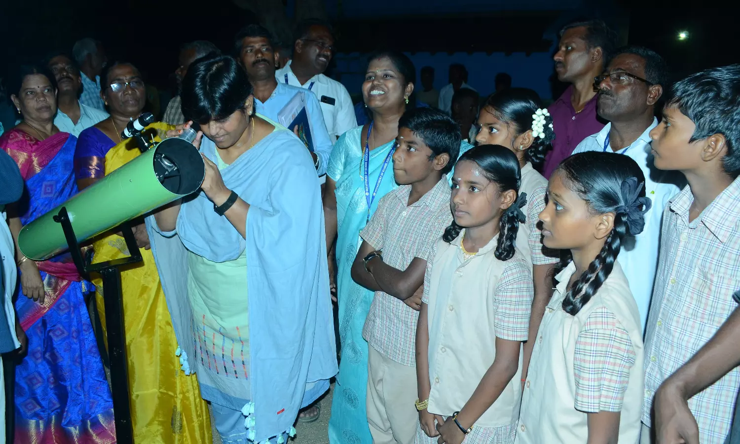 அரியலூர் மாவட்டம், இடையத்தான்குடி கிராமத்தில் உள்ள ஊராட்சி ஒன்றிய நடுநிலைப்பள்ளியில் மாணவ-மாணவிகளால் தயாரிக்கப்பட்ட தொலைநோக்கி மூலம் வான் நோக்கும் நிகழ்வினை கலெக்டர் ரமணசரஸ்வதி தொடங்கி வைத்தார். அப்போது கலெக்டர் ரமணசரஸ்வதி பேசுகையில், தன்னார்வ தொண்டு நிறுவனம் மூலம் தொலைநோக்கி குறித்த பயிற்சி அளிக்கப்பட்டு இந்த பள்ளி மாணவ-மாணவிகளால் தயாரிக்கப்பட்ட தொலைநோக்கி மூலம் வானின் அற்புதங்களை காணும் மிகப்பெரிய ஒரு வாய்ப்பினை பெற்றுள்ளனர். இடையத்தான்குடி ஊராட்சி ஒன்றிய நடுநிலைப்பள்ளி பிற பள்ளிகளுக்கு முன்னுதாரணமாக திகழ்கிறது. பெற்றோர்களும் தங்களது குழந்தைகளின் விருப்பத்திற்கேற்ப கல்வி பயில்வதில் உறுதுணையாக இருக்க வேண்டும். அரியலூர் மாவட்டத்திலேயே முதன்முறையாக தொலைநோக்கி மூலம் வான் நிகழ்வுகளைக் கண்டு களிக்கும் வாய்ப்பு இப்பள்ளியில் ஏற்படுத்தப்பட்டுள்ளது. இதன் மூலம் அருகாமை பள்ளி, கல்லூரி மாணவ-மாணவிகள், பொதுமக்கள் என அனைவரும் கண்டுகளிக்கும் வண்ணம் தொலைநோக்கி ஆனது பள்ளி வளாகத்திலேயே ஏற்படுத்தப்பட்டுள்ளது, என்றார். இதில் மாவட்ட முதன்மை கல்வி அலுவலர் விஜயலட்சுமி, தொடக்க கல்வி மாவட்ட அலுவலர் அம்பிகாபதி, பள்ளி தலைமையாசிரியை ஹேமலதா, பெற்றோர் ஆசிரிய கழகத்தினர், ஆசிரியர்கள், பள்ளி மாணவ, மாணவிகள் உள்ளிட்ட பலர் கலந்து கொண்டனர்.