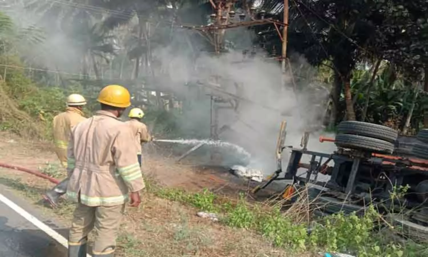 பொள்ளாச்சி அருகேடிரான்ஸ்பார்மர் மீது லாரி மோதி கவிழ்ந்தது-டிரைவர் உயிர்தப்பினார்