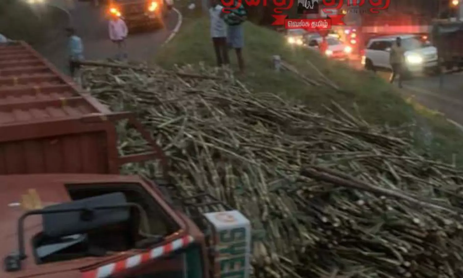 இந்த நிலையில் தாளவாடியில் இருந்து சத்தியமங்கலத்தில் உள்ள தனியார் சர்க்கரை ஆலைக்கு கரும்பு பாரம் ஏற்றிய மினி லாரி ஒன்று புறப்பட்டது. இந்த மினி லாாியானது திம்பம் மலைப்பாதையின் 25-வது கொண்டை ஊசி வளைவில் திரும்பியபோது கட்டுப்பாட்டை இழந்து சாலையோரத்தில் கவிழ்ந்து விபத்துக்குள்ளானது. இந்த விபத்தில் மினி லாரியின் டிரைவர் காயமின்றி உயிர் தப்பினார். இதில் லாரியில் இருந்த கரும்புகள் ரோட்டில் சிதறின. இதன்காரணமாக திம்பம் மலைப்பாதையின் இருபுறங்களிலும் வாகனங்கள் அணிவகுத்து நின்றன. பண்ணாரியில் இருந்து கிரேன் வரவழைக்கப்பட்டு கரும்பு லாரியை அகற்றும் பணி நடைபெற்று வருகிறது. இருட்டி விட்டதால் பணியில் தொய்வு ஏற்பட்டு உள்ளது. இதன்காரணமாக திம்பம் மலைப்பாதையில்பல மணி நேரம் போக்குவரத்து பாதிக்கப்பட்டது. இதுகுறித்து ஆசனூர் போலீசார் விசாரணை மேற்கொண்டு வருகிறார்கள்.