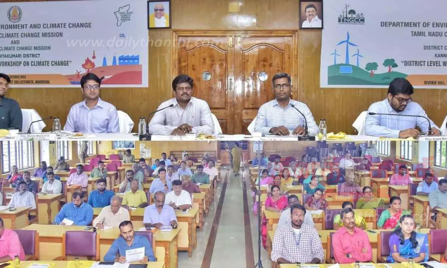 தமிழ்நாடு சுற்றுச்சூழல் மற்றும் காலநிலை மாற்றத்துறை சார்பில் காலநிலை மாற்றம் குறித்த கருத்தரங்கம் நாகர்கோவிலில் உள்ள கலெக்டர் அலுவலக வருவாய் கூட்டரங்கில் நேற்று நடந்தது.
