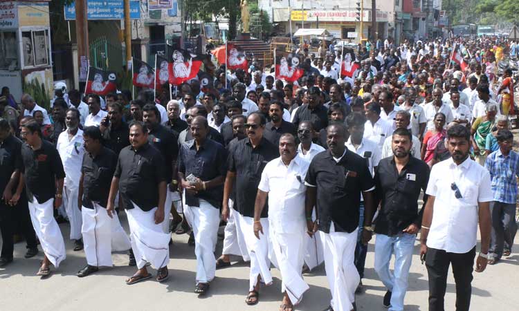 தூத்துக்குடியில் அ.தி.மு.க.வினர் கருப்பு சட்டை அணிந்து மவுன ஊர்வலம்