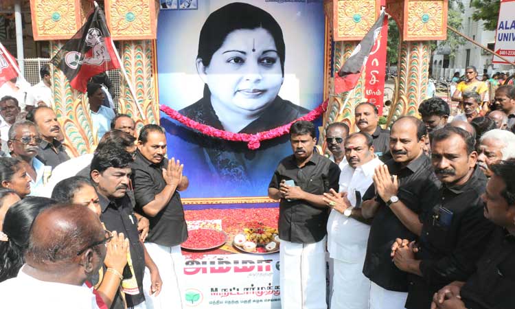 அதன்படி தூத்துக்குடி ராஜாஜி பூங்கா முன்பு அலங்கரித்து வைக்கப்பட்ட ஜெயலலிதா உருவப்படத்துக்கு மாவட்ட செயலாளர் எஸ்.பி.சண்முகநாதன் தலைமையில் கட்சியினர் மலர் தூவி அஞ்சலி செலுத்தினர்.