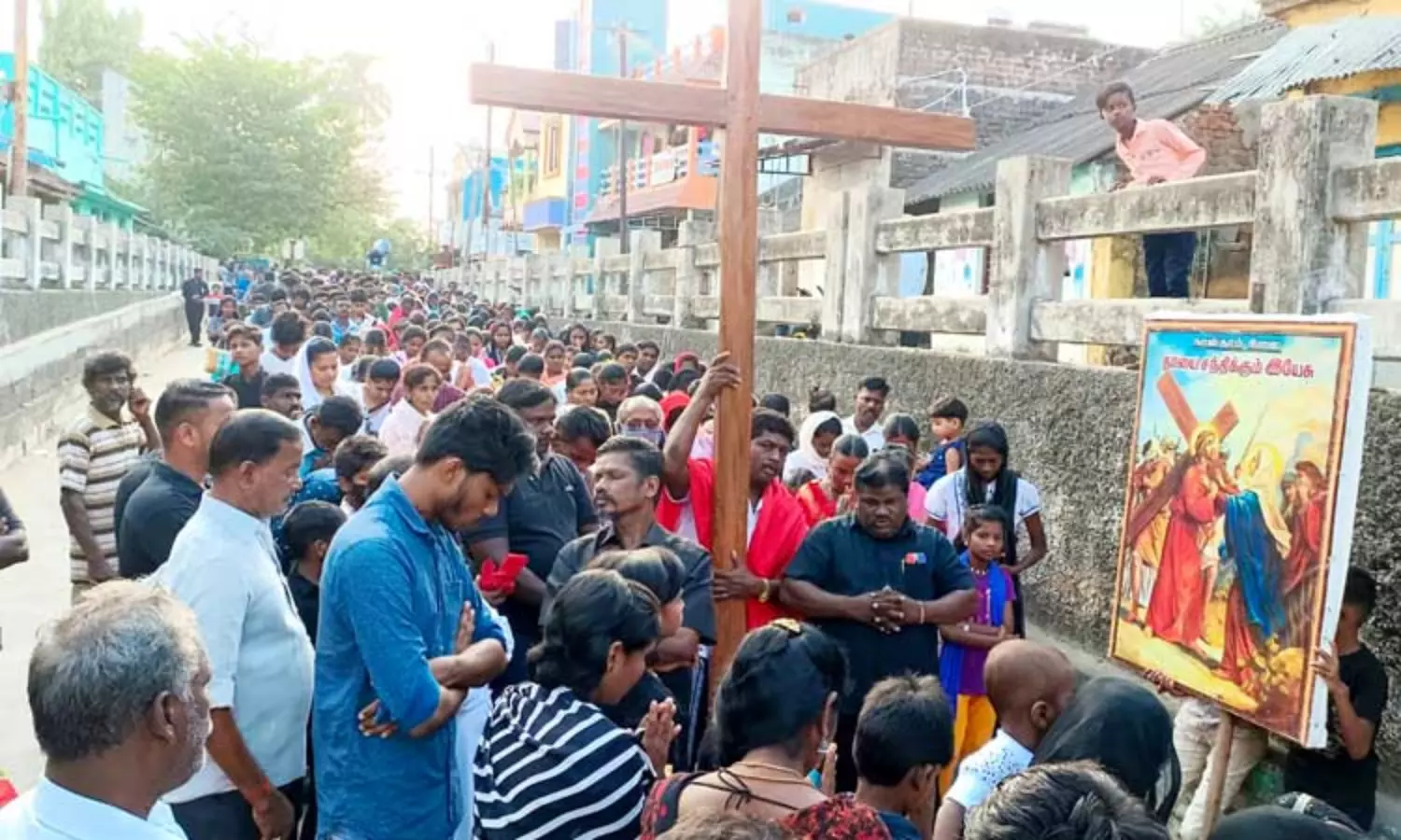 புனித வெள்ளியை முன்னிட்டு கிறிஸ்தவ தேவாலயங்களில் சிலுவைப்பாதை வழிபாடு நடைபெற்றது.;