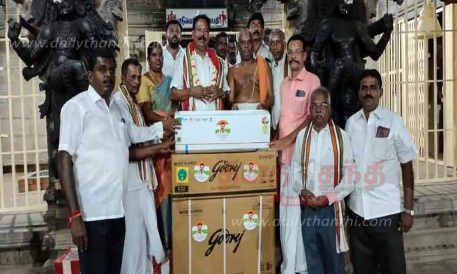 வெங்கடாசலபதி பெருமாள் கோவிலுக்கு குளிர்சாதன எந்திரம் வழங்கப்பட்டது.;
