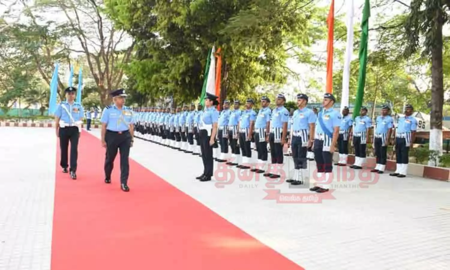 இதையடுத்து வீரர்களின் அணி வகுப்பு மரியாதையை ஏற்றுக்கொண்ட விமானப்படை ஏர்மார்ஷல் கே.அனந்தராமன், விமானப்படை நிர்வாக கல்லூரிக்கு சென்று ஆய்வு செய்தார்.