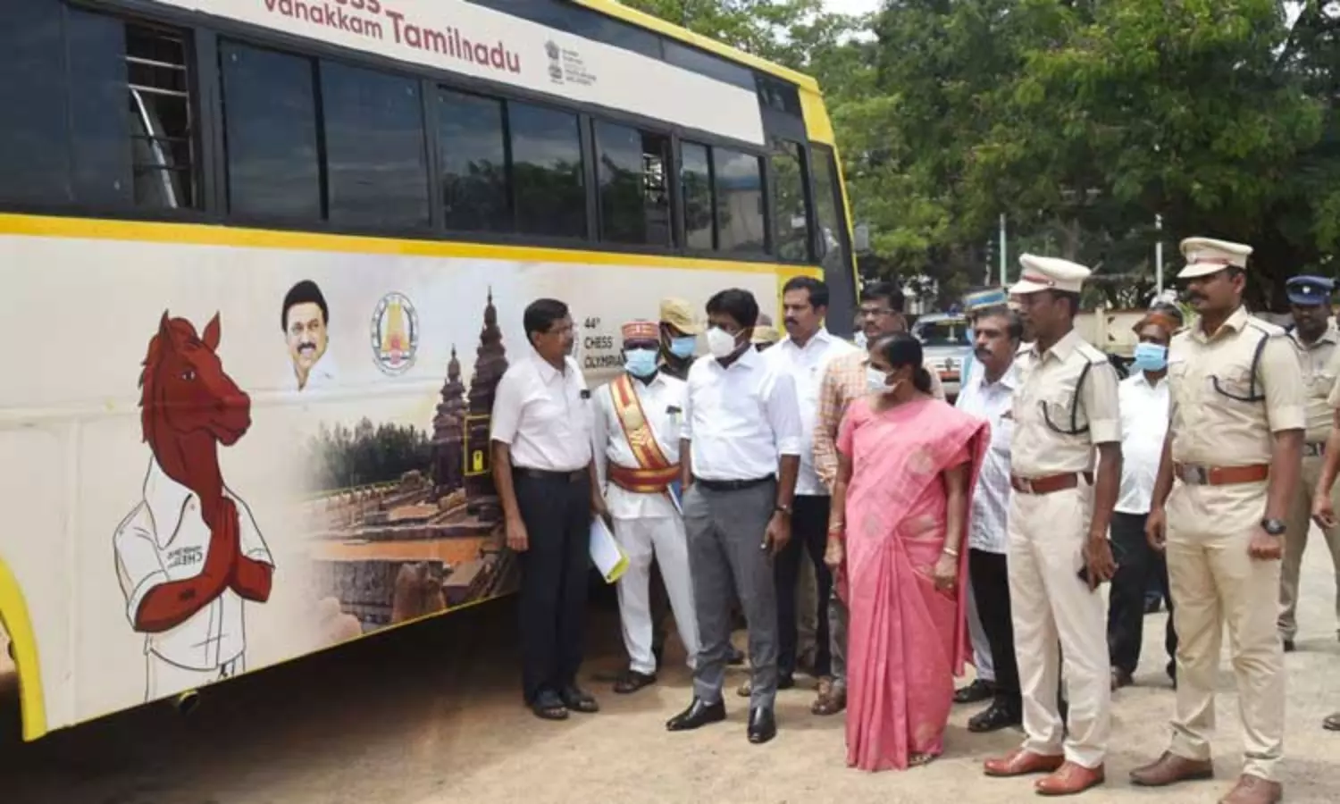 44-வது செஸ் ஒலிம்பியாட் போட்டி குறித்து பள்ளி- கல்லூரி வாகனங்களில் ஸ்டிக்கர் ஒட்டி விழிப்புணர்வு கலெக்டர் மோகன் தொடங்கி வைத்தார்