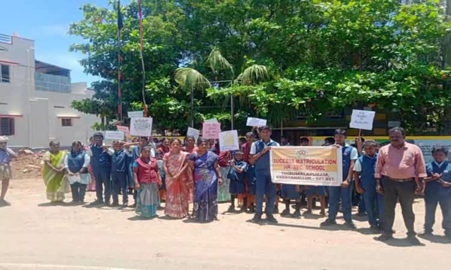 `மரம் வளர்ப்போம், மழை பெறுவோம்', `நெகிழி இல்லா சுற்றுப்புற சூழலை ஏற்படுத்துவோம்', `நம்ம ஊரு சூப்பர்' ஆகியவை பற்றிய விழிப்புணர்வு பேரணி கடையநல்லூர் அருகே திருமலாபுரம் சக்சஸ் மெட்ரிக் மேல்நிலைப்பள்ளியில் நடைபெற்றது. திருமலாபுரம் சான்றோர் தொடக்கப்பள்ளியில் இருந்து தொடங்கி பஞ்சாயத்து அலுவலகம் வரை பேரணி நடந்தது. பேரணியை பள்ளியின் தாளாளர் நாகராஜன் தொடங்கி வைத்தார். ஒருங்கிணைப்பாளர் சிவந்தி வழி நடத்தினார். மாணவர்கள் பதாகைகளை கையில் ஏந்தியவாறு சென்றனர். இதில் உதவி தலைமை ஆசிரியர் விஜயலட்சுமி, ஆசிரியர்கள் கவிதா, ஜெயந்தி, மஞ்சு, மனோஜ், முத்துக்குமார் மற்றும் பலர் கலந்து கொண்டனர்.