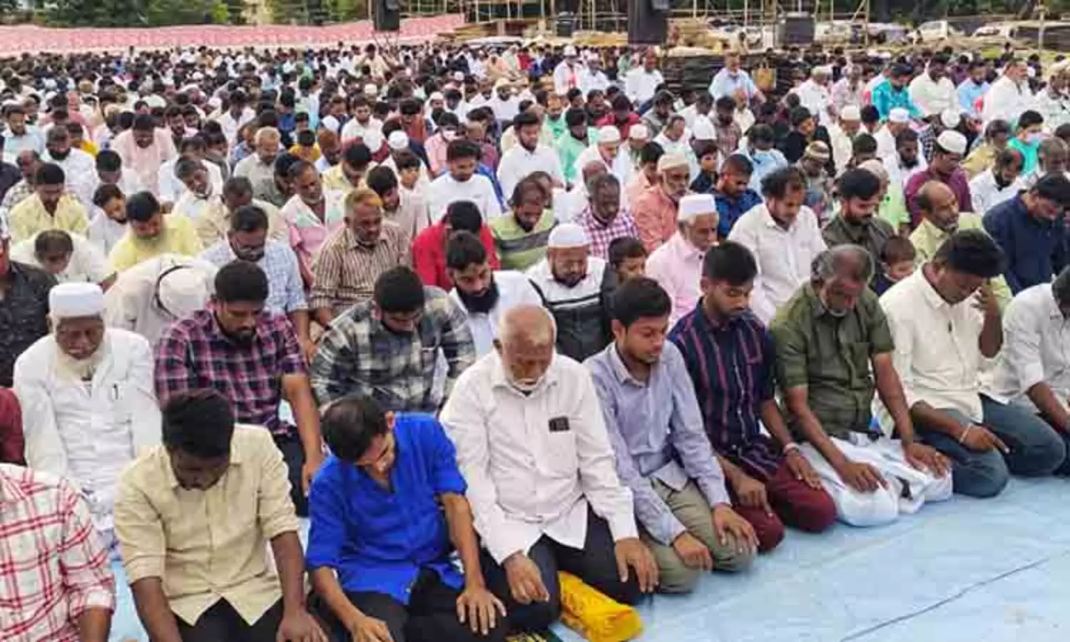 பக்ரீத் பண்டிகையையொட்டி மதுரை தமுக்கம் மைதானத்தில் ஜாக் அமைப்பு சார்பில் சிறப்பு தொழுகையில் ஈடுபட்ட முஸ்லிம்கள்.