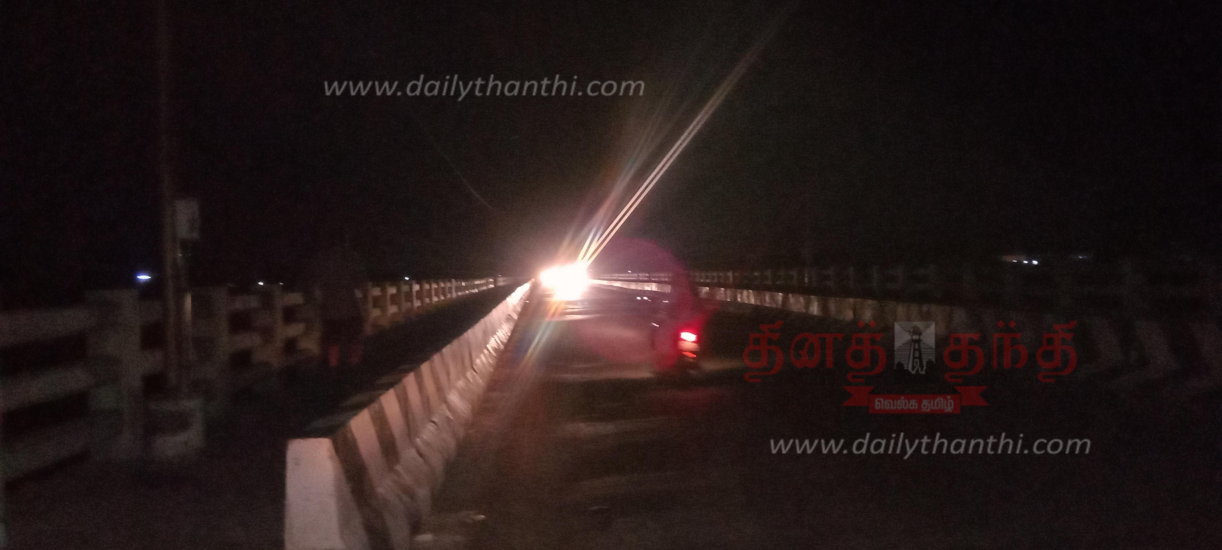 தஞ்சையை அடுத்த திருக்காட்டுப்பள்ளி பழமார்நேரி ஊராட்சி பகுதியில் காவிரி ஆற்றின் குறுக்கே புதிய பாலம் கட்டப்பட்டு ேபாக்குவரத்து நடைபெற்று வருகிறது. இந்த பாலத்தின் வழியாக திருக்காட்டுப்பள்ளியில் இருந்து கல்லணை, திருவையாறு, சமயபுரம், புள்ளம்பாடி லால்குடி, திருச்சி ஆகிய பகுதிகளுக்கு அரசு பஸ் சென்று வருகின்றன. தினந்தோறும் ஏராளமான லாரிகளும், இரண்டு சக்கர வாகனங்களும் சென்று வருகின்றன. மிகுந்த போக்குவரத்து அதிகம் உள்ள இந்த பாலத்தில் இரு பகுதிகளிலும் பாலம் கட்டப்பட்ட போதே 30-க்கும் மேற்பட்ட மின் கம்பங்கள் அமைக்கப்பட்டு அதில் விளக்குகள் பொருத்தப்பட்டன.