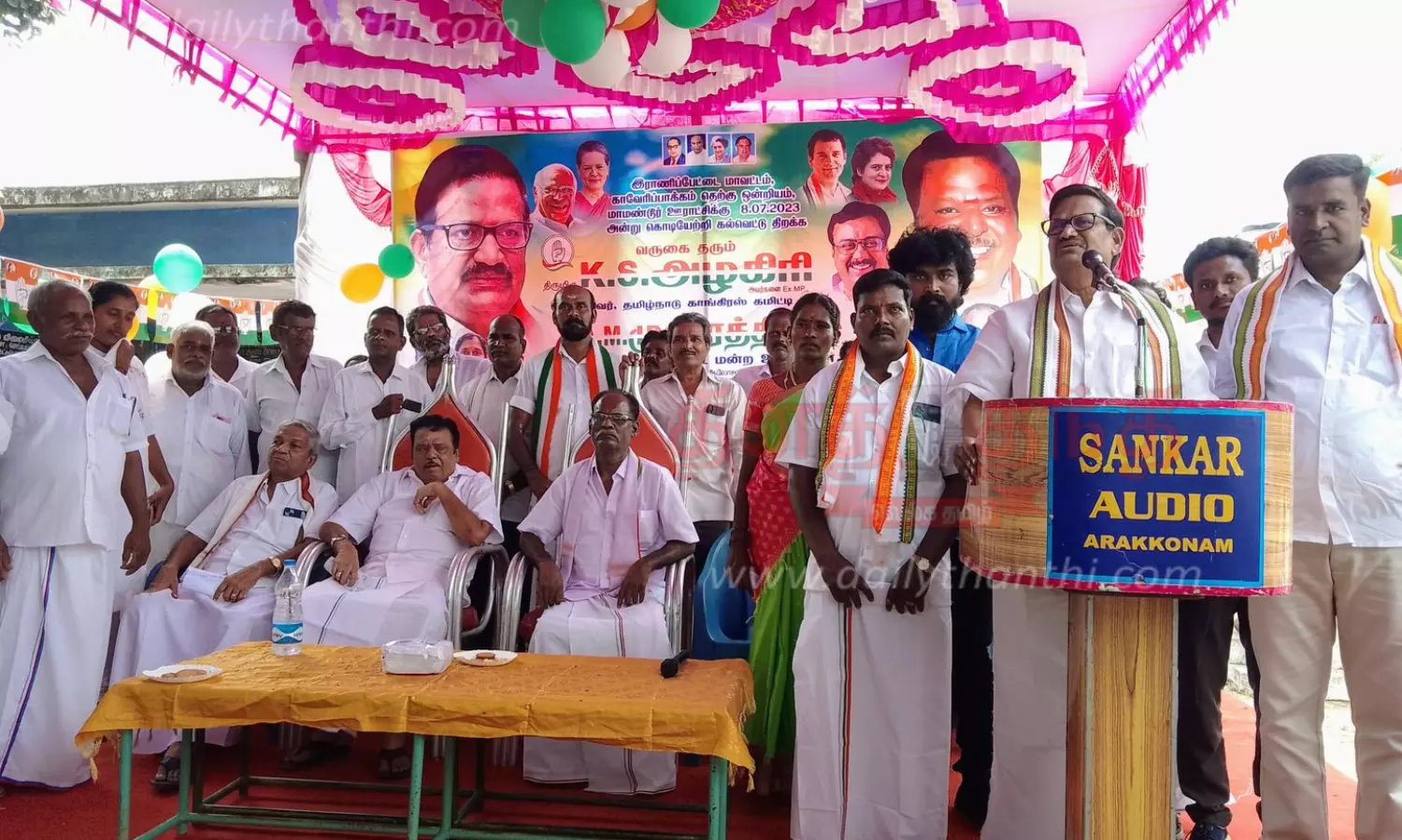 காவேரிப்பாக்கம் தெற்கு ஒன்றிய தலைவர் பிரகாஷ் தலைமை தாங்கினார். சோளிங்கர் சட்டமன்ற உறுப்பினர் ஏ. எம். முனிரத்னம், மாவட்ட தலைவர் பஞ்சாட்சரம் ஆகியோர் முன்னிலை வகித்தனர்.