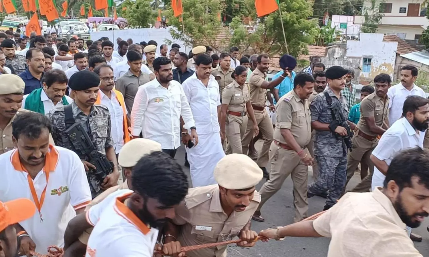 என் மண், என் மக்கள் என்ற முழக்கத்துடன் பா.ஜனதா தலைவர் அண்ணாமலை தமிழகம் முழுவதும் பாத யாத்திரை மேற்கொண்டு வருகிறார். அதன் ஒரு பகுதியாக திருப்பூர் மாவட்டம் மடத்துக்குளத்தை அடுத்த கொழுமம் பகுதியில் கோட்டை மாரியம்மன் கோவில் முன்பிருந்து பாத யாத்திரையை தொடங்கினார். முன்னதாக மலைவாழ் மக்கள் தங்களது பாரம்பரிய நடனத்துடன் அவருக்கு வரவேற்பளித்தனர்.