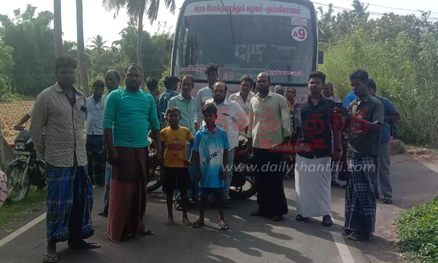 கோடங்குடி ஊராட்சியில் அரசு பஸ்சை மறித்து சாலை மறியல் ஈடுபட்டனர்.;