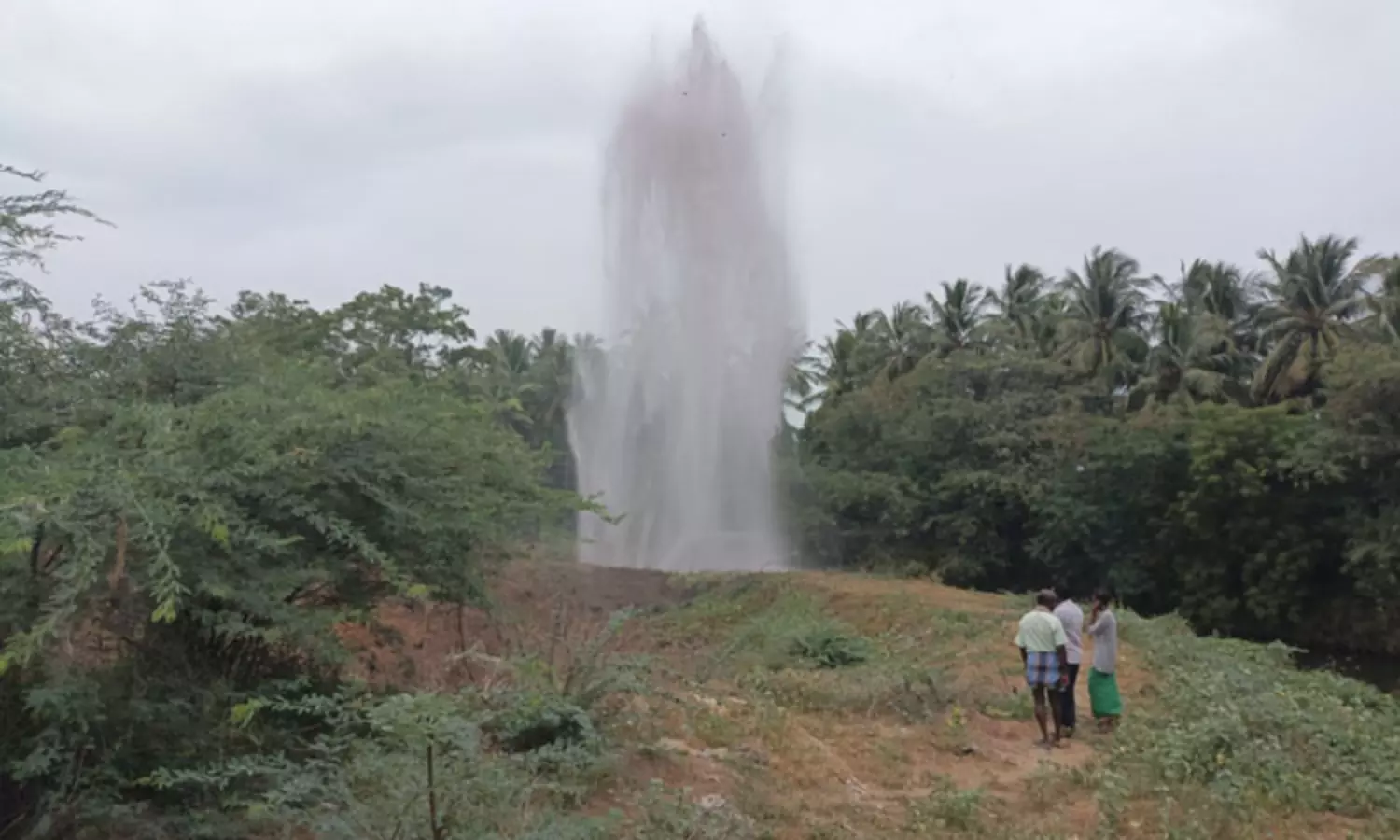 அப்போது மாயனூர் ரெயில்வே கேட்டு அருகே திடீரென குழாயில் உடைப்பு ஏற்பட்டு சுமார் 100 அடி உயரத்துக்கு தண்ணீர் பீய்ச்சி அடித்தது. இதனால் அப்பகுதியில் பல லட்சம் லிட்டர் தண்ணீர் ஆறுபோல் ஓடி வீணாகியது. பின்னர் உடைப்பு சரிசெய்யப்பட்டது. இதனால் அப்பகுதியில் சிறிது நேரம் பரபரப்பு ஏற்பட்டது.