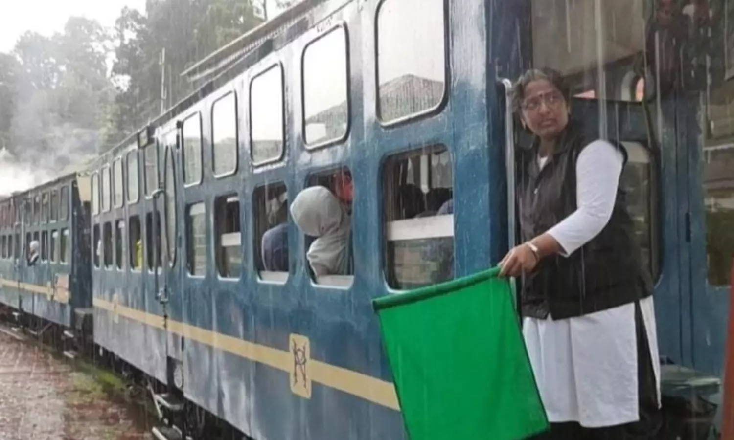 மேட்டுப்பாளையத்திலிருந்து ஊட்டிக்கு வழக்கம் போல் காலை7.10 மணிக்கு புறப்பட்டுச் சென்ற மலை ரெயிலில் பிரேக்ஸ் உமன் சிவஜோதி பச்சைக் கொடியை அசைத்தபடி மகிழ்ச்சியுடன் தனது பணியை தொடங்கினார்.