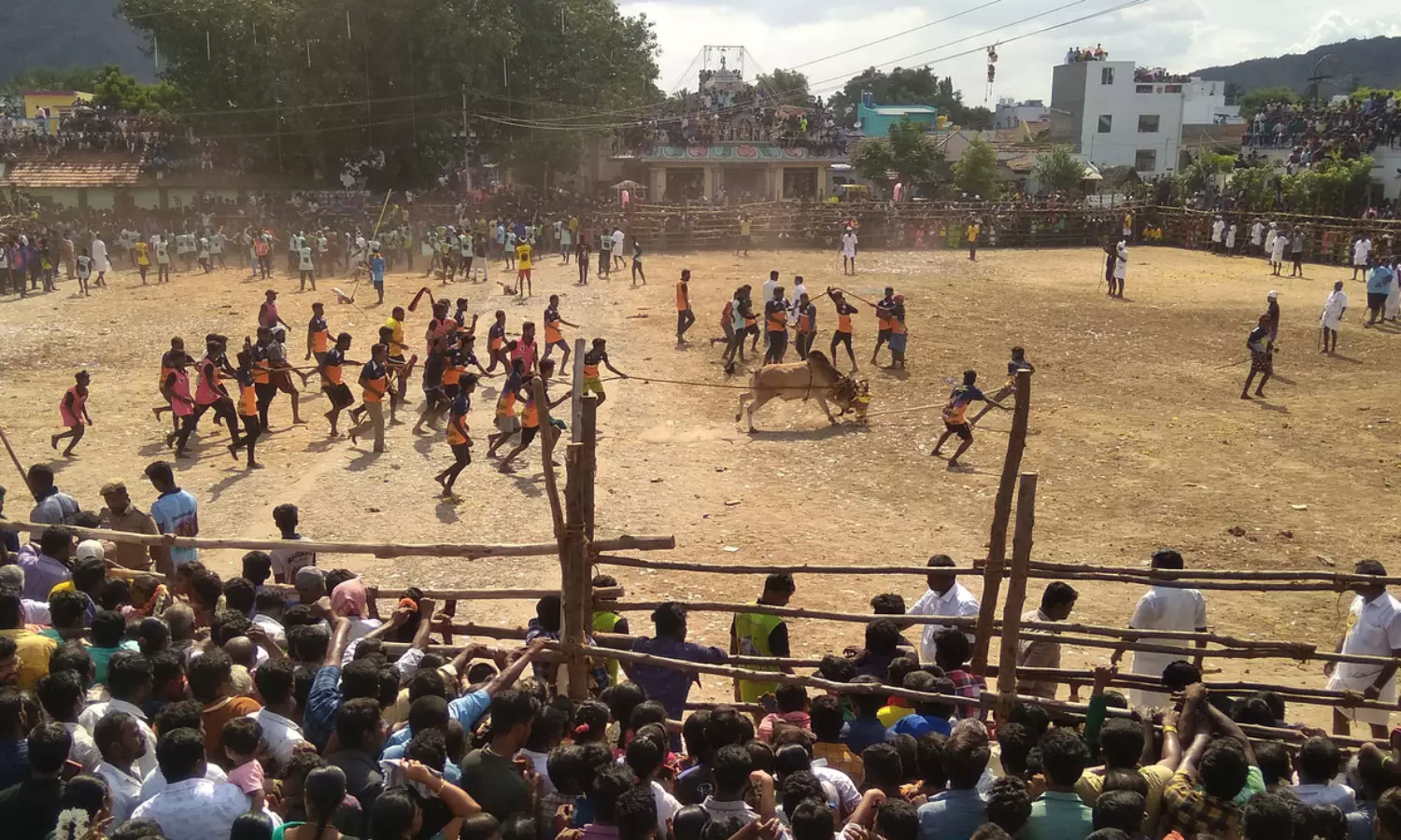 மூங்கில் குத்துமுனியப்பன் கோவில் திருவிழாவில் எருதாட்டம்