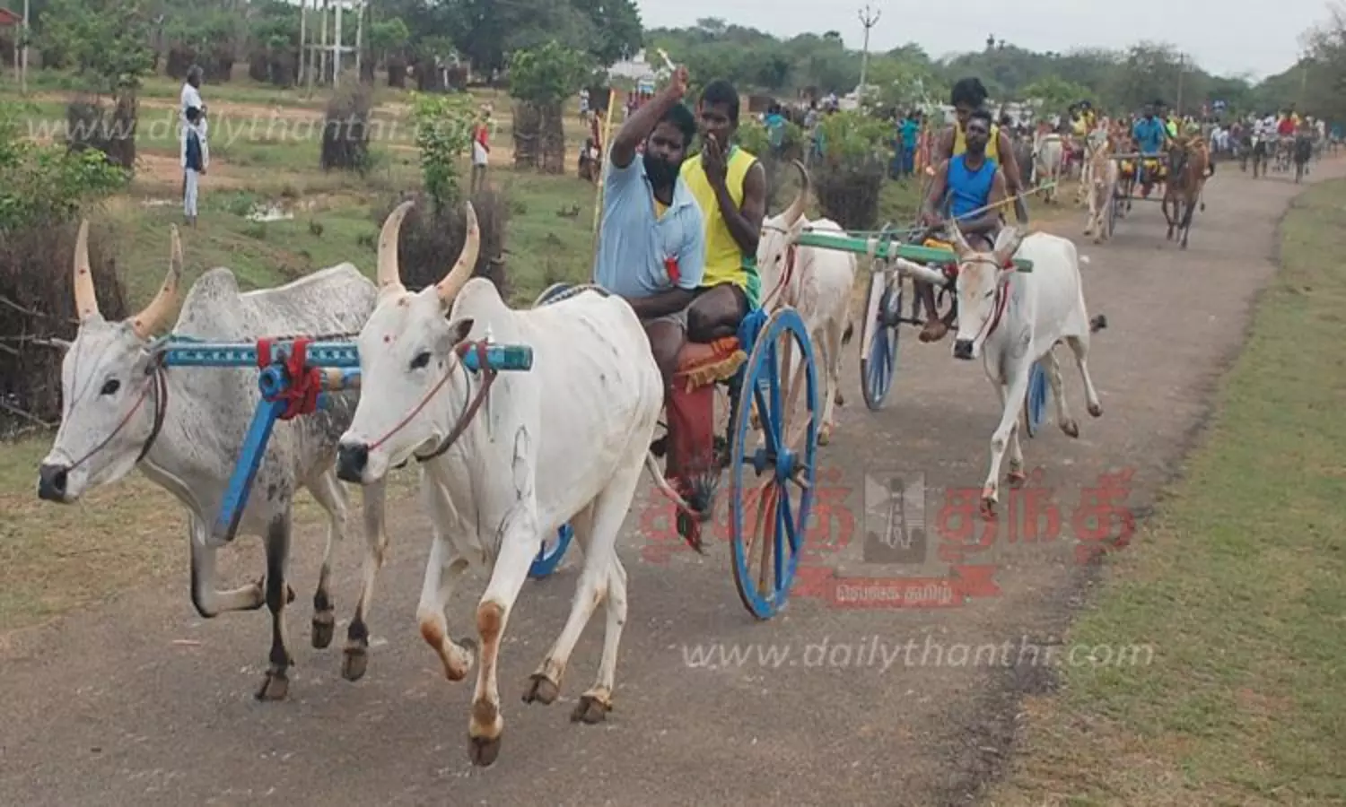 கல்லல், காரைக்குடி பகுதியில் கோவில் விழாவையொட்டி மாட்டு வண்டி பந்தயம்
