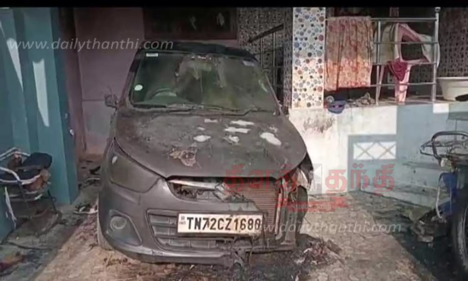 நேற்று அதிகாலையில் இவரது வீட்டு முன்பு நிறுத்தி இருந்த கார், மோட்டார் சைக்கிள் தீப்பிடித்து எரிந்தது. இதை பார்த்த அக்கம்பக்கத்தினர் தண்ணீரை ஊற்றி தீயை அணைத்தனர். இதேபோல் அருகில் உள்ள விவசாயி அருண்குமார் வீட்டு முன் நிறுத்தியிருந்த மோட்டார் சைக்கிளும் தீப்பிடித்து எரிந்தது. அதையும் அப்பகுதி மக்கள் தண்ணீரை ஊற்றி அணைத்தனர். எனினும் 2 மோட்டார் சைக்கிள்கள் முழுவதுமாகவும், கார் பாதியளவும் எரிந்து நாசமானது.