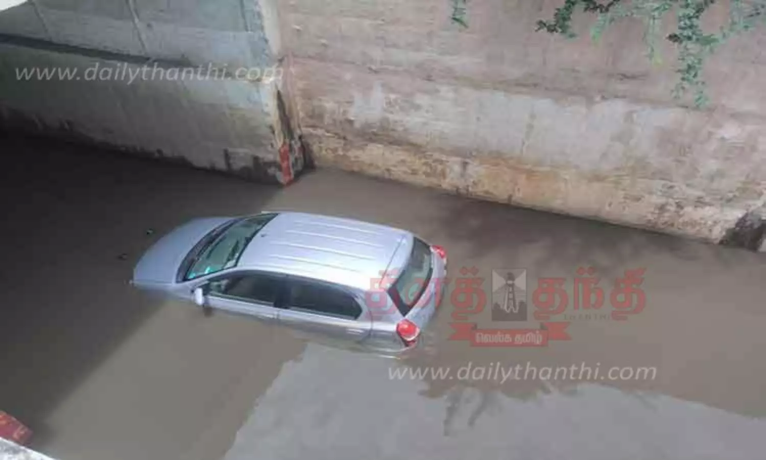 ரெயில்வே சுரங்கப்பாதையில் தேங்கிய மழைநீரில் சிக்கிய கார்கள்