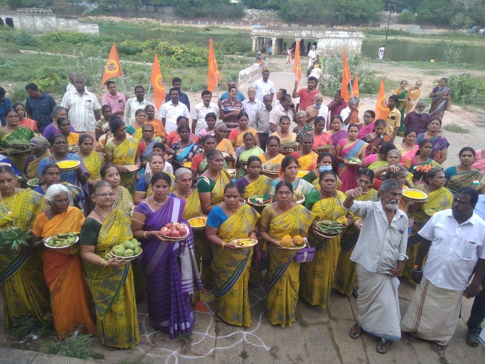 நேற்று மாலையில் விஸ்வ இந்து பரிஷத் சார்பில் நெல்லை சந்திப்பு வரதராஜ பெருமாள் கோவில் முன்பு தொடங்கி சந்திப்பு கைலாசநாதர் கோவில் வரை தாமிரபரணி நதிக்கு உரிய சீர்வரிசைகளை எடுத்து கொண்டு ஊர்வலமாக வந்து தைப்பூச மண்டபத்தில் தாமிரபரணி நதிக்கு பூஜை செய்து சீர்வரிசை செய்யும் சிறப்பு நிகழ்ச்சி நடந்தது.