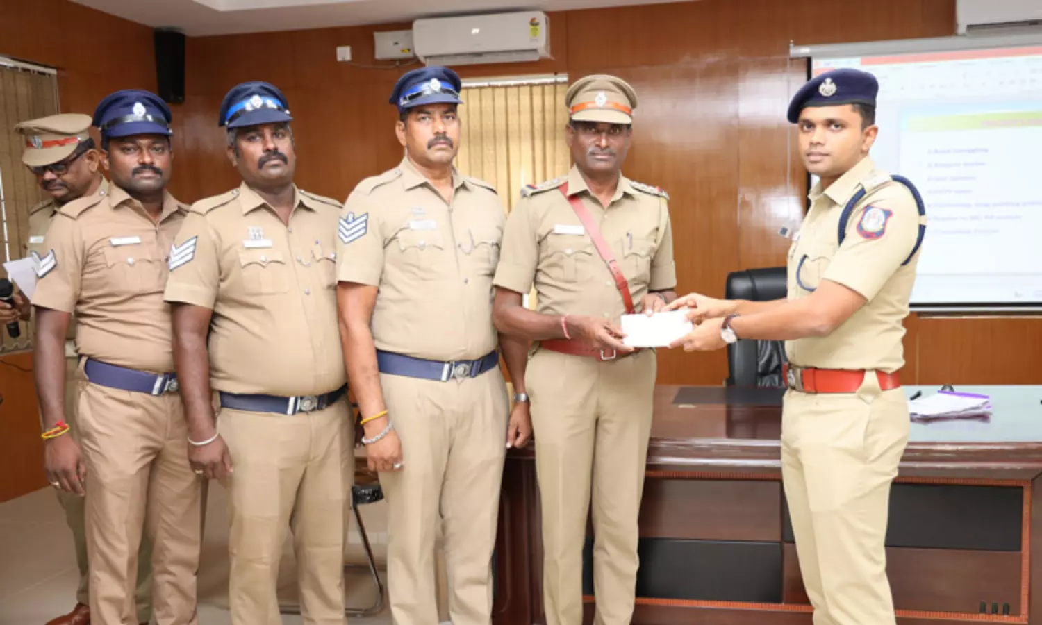 திருப்பத்தூர் மாவட்ட போலீஸ் சூப்பிரண்டு ஆல்பர்ட் ஜான், திருப்பத்தூர் மாவட்டத்தில் உள்ள போலீஸ் நிலையங்களில் சிறப்பாக பணியாற்றிய போலீசாருக்கு பாராட்டு தெரிவித்து சான்றிதழ்களை வழங்கினார். இதில் ஆலங்காயம் அருகே நடந்த பெண் கொலை வழக்கில் சிறப்பாக செயல்பட்டு 24 மணி நேரத்தில் குற்றவாளியை பிடித்த போலீஸ் இன்ஸ்பெக்டர் பழனி தலைமையிலான போலீசார் சதீஷ்குமார், கிருபானந்தம், விக்னேஷ் குழுவினருக்கு வெகுமதி மற்றும் பாராட்டு சான்றிதழ் வழங்கினார்.