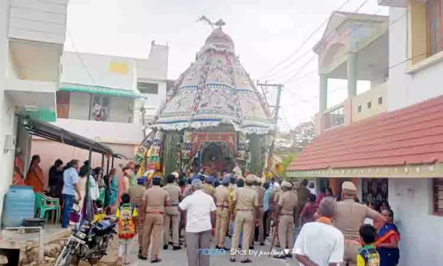 வேறொரு சமூகத்தை சேர்ந்த மக்களின் மண்டிக்கு 20 மீட்டர் தூரத்தில் தேர் இழுத்துவரப்பட்டபோது, அங்கிருந்து மண்டி வரை அந்த சமூகத்தை சேர்ந்த மக்கள் தேரை இழுத்துச்செல்ல முயன்றனர். ஆனால் அவர்கள் தேரை இழுத்துச்செல்ல, ஏற்கனவே தேரை இழுத்து வந்த மக்கள் எதிர்ப்பு தெரிவித்தனர். இதனால் இரு தரப்பினருக்கும் இடையே வாக்குவாதம் ஏற்பட்டது. மேலும் இந்த பிரச்சினையால் தேர் நடுவழியில் நிறுத்தப்பட்டது.