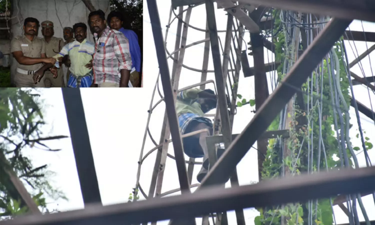 மனைவியை அழைத்து வந்தால்தான் கீழே இறங்குவேன் - செல்போன் கோபுரத்தில் ஏறி மிரட்டல் விடுத்த கொத்தனார்