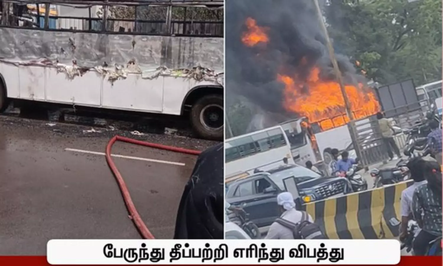 சென்னை: தனியார் நிறுவனத்தின் ஊழியர் பஸ் தீப்பற்றி எரிந்ததால் பரபரப்பு