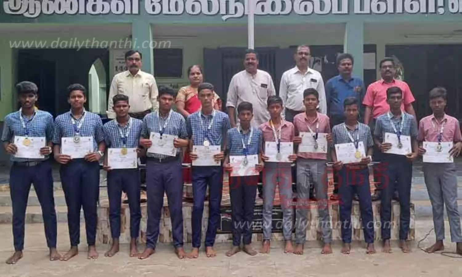 வெற்றி பெற்ற மாணவர்களை பள்ளி தலைமை ஆசிரியர் க.ஜெயகாந்தன் சான்றிதழ் வழங்கினார். வெற்றி பெற்ற மாணவர்களையும், பயிற்சி அளித்து ஊக்கமளித்த உடற்கல்வி இயக்குனர் வி.சூரியநாராயணன், உடற்கல்வி ஆசிரியர்கள் பி.சரவணன், டி.ரகுராமன் ஆகியோர்களை பாராட்டி வாழ்த்தினார்.