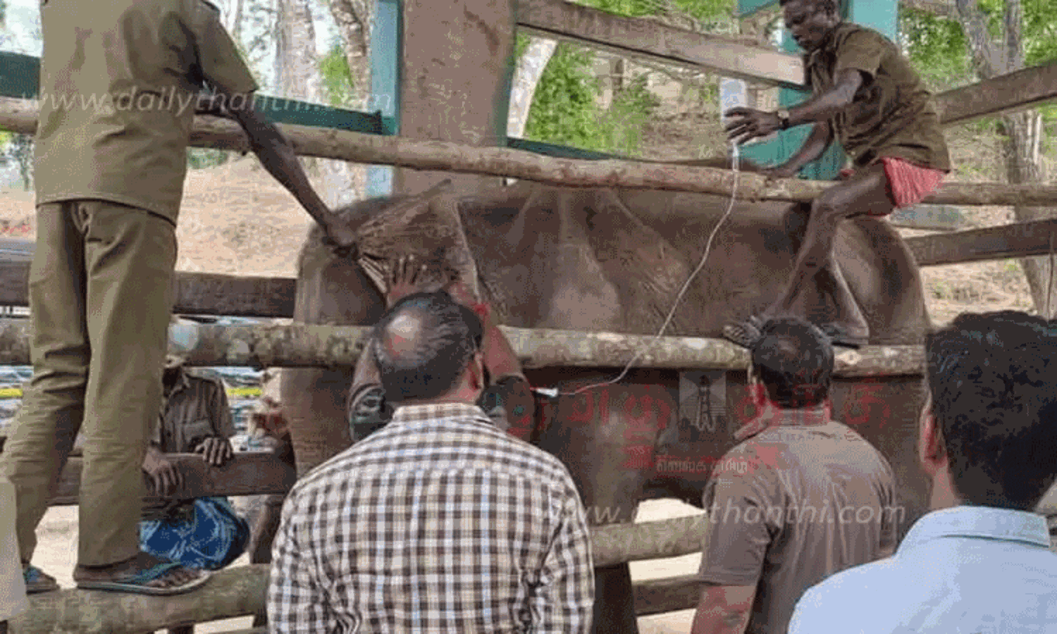இதற்கிடையில் மருத்துவ குழுவினர் யானையின் உடல்நிலையை தொடர்ந்து கண்காணித்து வந்தனர். யானையால் சாப்பிட முடியாத நிலையில், அதற்கு குளுக்கோஸ் கொடுக்கப்பட்டு வந்தது.