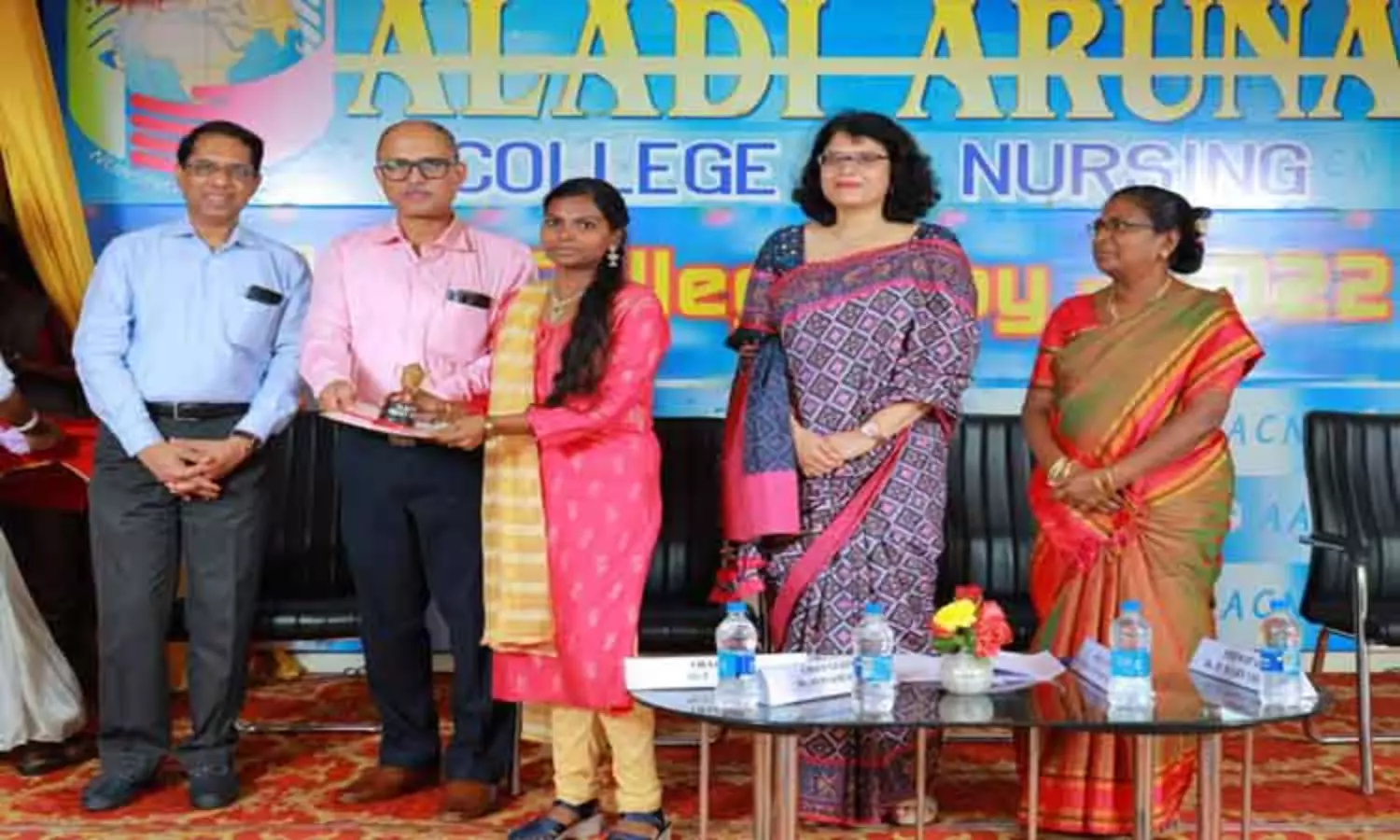 ஆலங்குளம் அருகே ஆலடி அருணா செவிலியர் கல்லூரியில் ஆண்டு விழா நடைபெற்றது. விழாவிற்கு கல்லூரியின் சேர்மன் டாக்டர் பாலாஜி தலைமை தாங்கினார். கல்லூரி முதல்வர் நிஷா வில்சன் வரவேற்றார். சிறப்பு விருந்தினராக நெல்லை போலீஸ் கமிஷனர் அவினாஷ் குமார், உச்ச நீதிமன்ற வழக்கறிஞர் சுஷ்மா அவினாஷ் குமார் ஆகியோர் கலந்து கொண்டு சிறப்புரையாற்றினர். மருத்துவத்துறையில் செவிலியரின் பங்கு மற்றும் அவர்களின் அர்ப்பணிப்பு ஆகியவற்றை குறித்து கல்லூரி சேர்மன் டாக்டர் பாலாஜி பெருமையுடன் பேசினார். தொடர்ந்து சிறப்பு விருந்தினர்களுக்கு நினைவு பரிசினை வழங்கினார்.