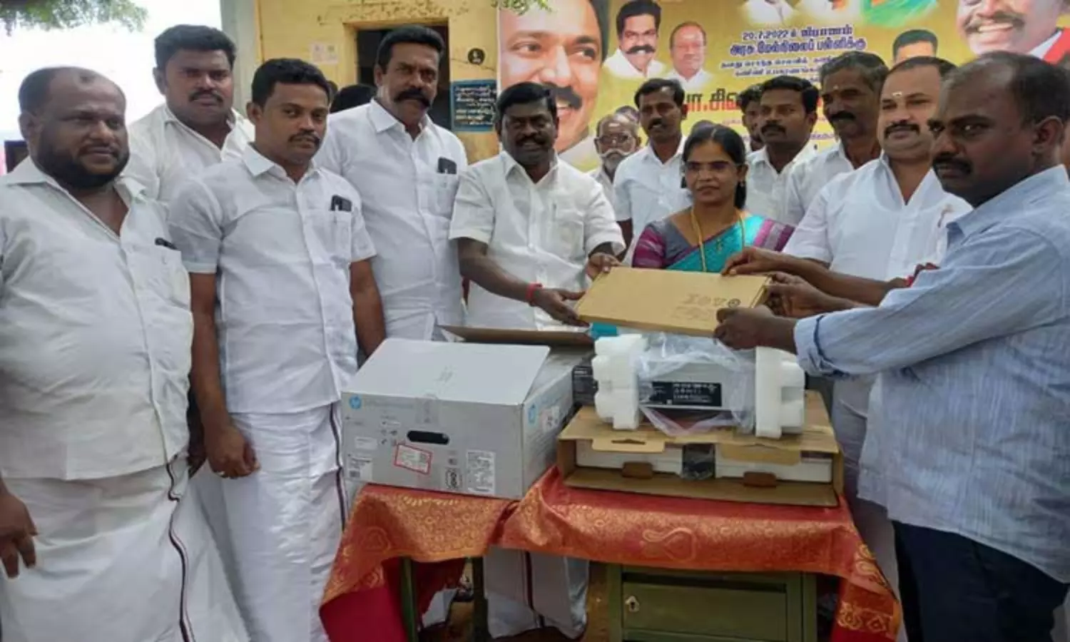 வீராணம் அரசு பள்ளிக்கு கம்ப்யூட்டர் உபகரணங்கள்