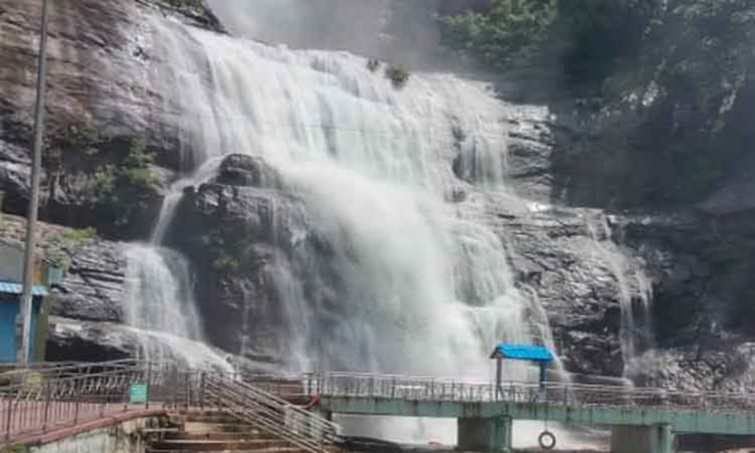 இதற்கிடையே, குற்றாலம் மெயின் அருவிக்கரை அருகில் பெண்கள் குளிக்கும் பகுதியில் பெண்கள் உடை மாற்றும் அறை உள்ளது. இந்த அறையின் மேற்பகுதியில் ஆஸ்பெட்டாஸ் சீட் மூலம் மேற்கூரை அமைக்கப்பட்டு இருந்தது. இதன் மீது ஒரு மரக்கிளை நேற்று முன்தினம் இரவு விழுந்துள்ளது. இதனால் மேற்கூரை சேதம் அடைந்து உள்ளது.