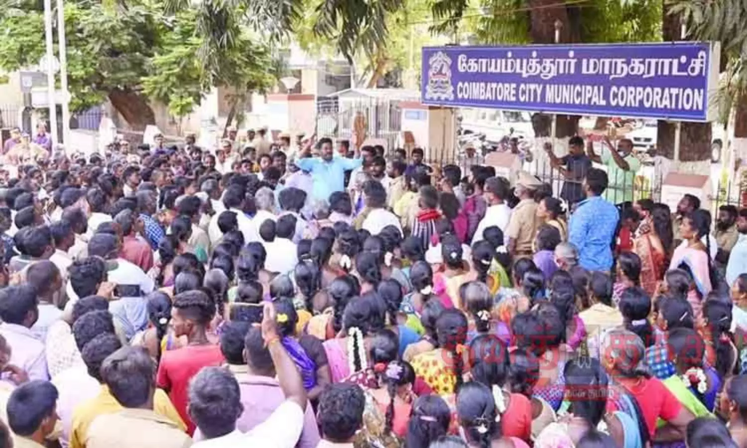 கோவையில் 18 அம்ச கோரிக்கைகளை வலியுறுத்தி ஒப்பந்த தூய்மை பணியாளர்கள் நேற்று முதல் வேலை நிறுத்த போராட்டத்தை தொடங்கினர். அவர்கள் மாநகராட்சி அலுவலகத்தை முற்றுகையிட்டதால் பரபரப்பு ஏற்பட்டது.