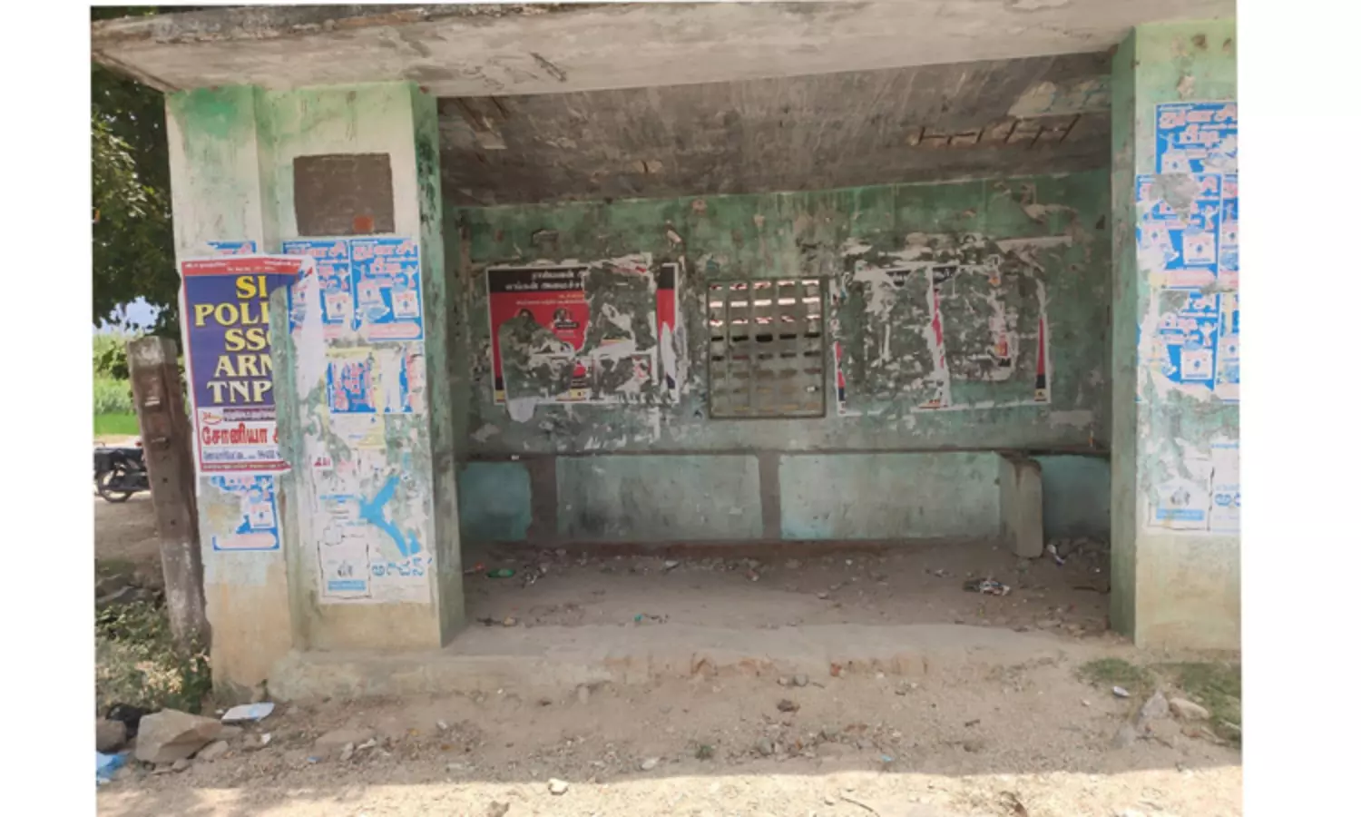 சேதமான பயணிகள் நிழற்கூடத்தை சீரமைக்க வேண்டும் என சமூக ஆர்வலர்கள் கோரிக்கை விடுத்துள்ளனர்.;