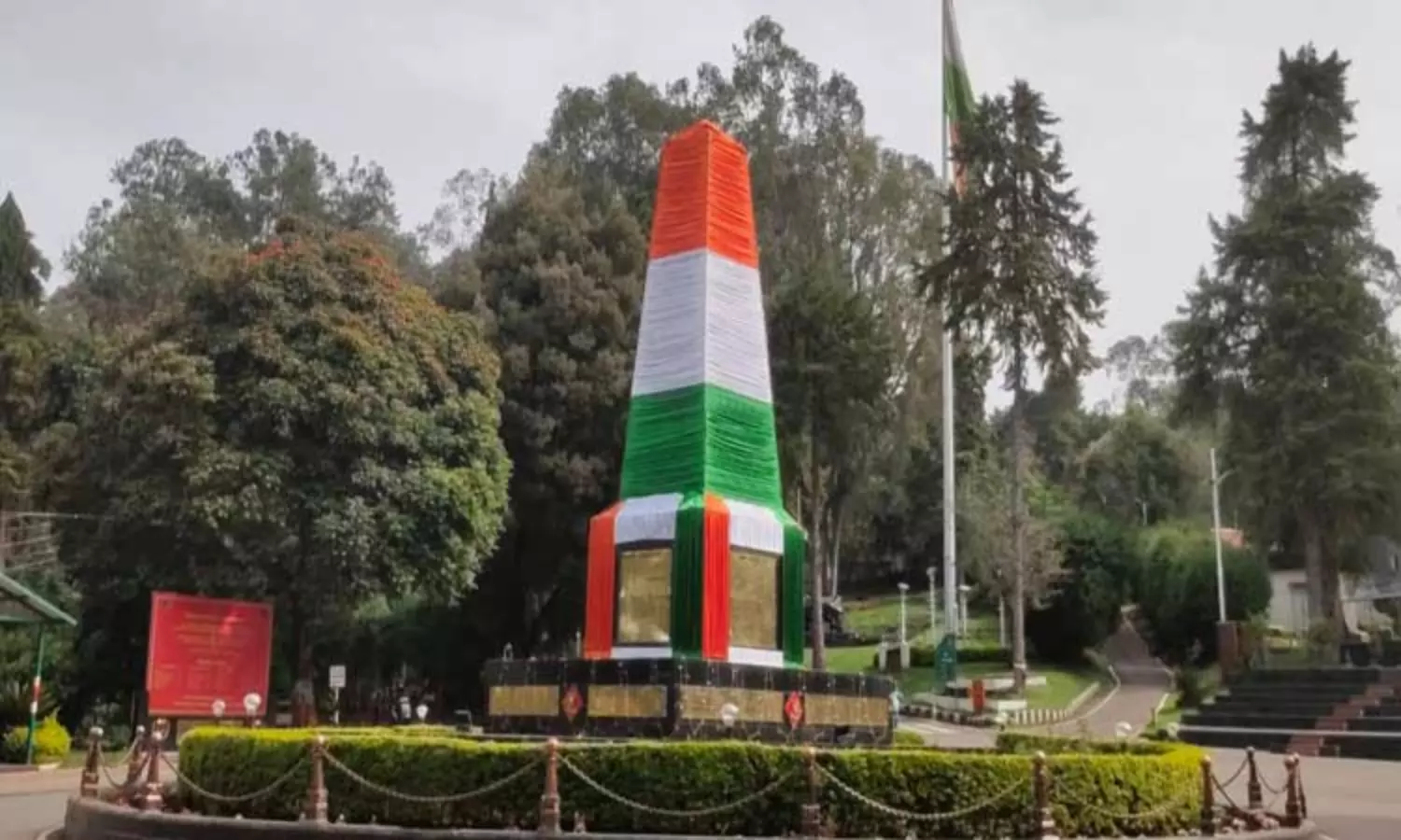 குன்னூர் ராணுவ பயிற்சி கல்லூரி அருகே தேசியக்கொடியால் போர் நினைவு சின்னம் அலங்கரிப்பு