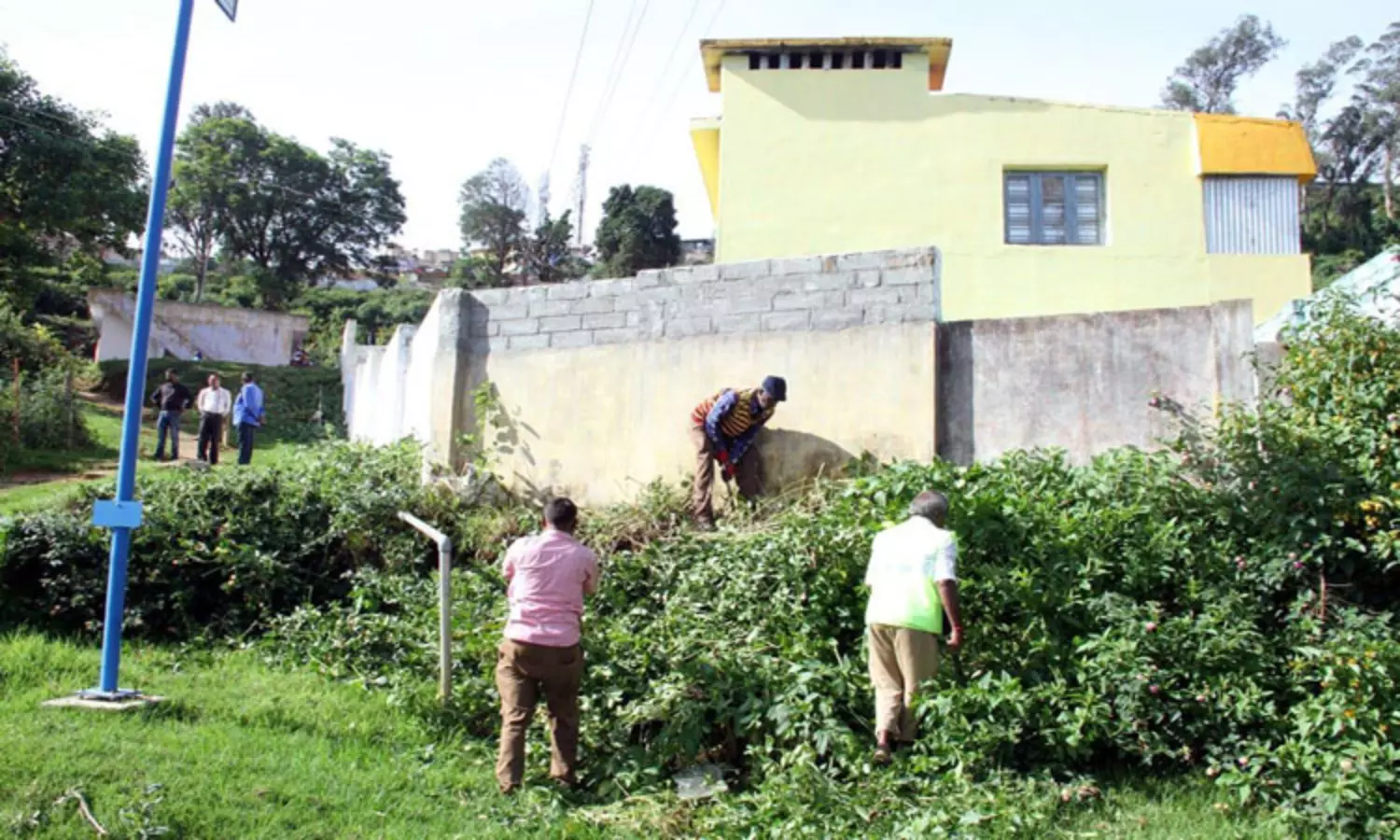 கோத்தகிரி பேரூராட்சியில் முட்புதர்களை வெட்டி அகற்றும் பணி