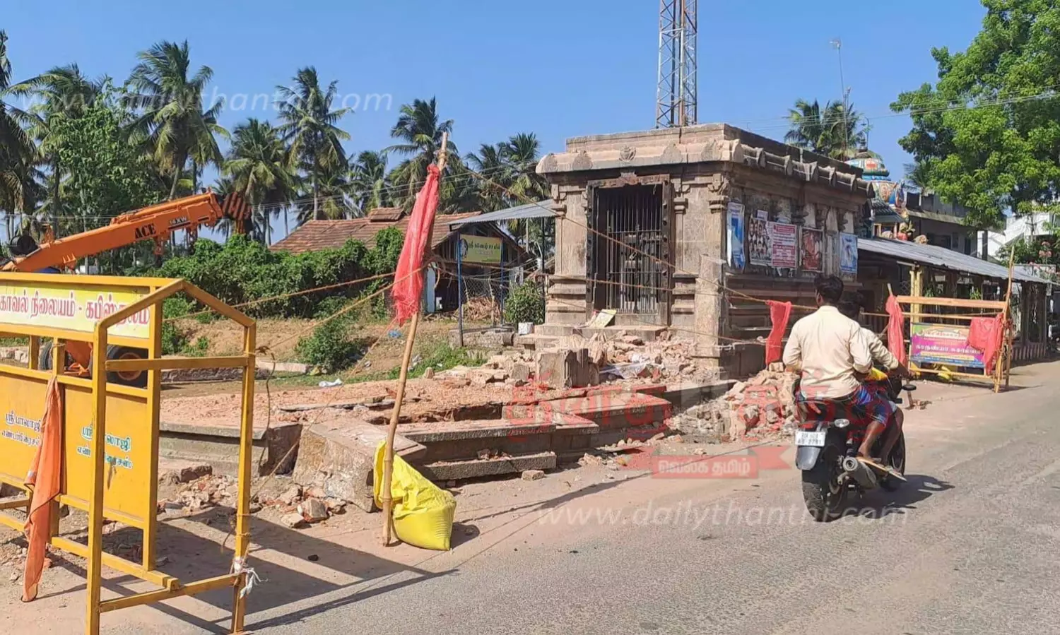 திருவையாறு- கும்பகோணம் நெடுஞ்சாலை விரிவாக்க பணி காரணமாக பழங்கால 3 விநாயகர் கோவில்கள் இடித்து அகற்றப்பட்டன.
