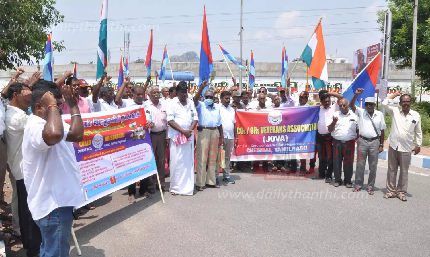 ஆர்ப்பாட்டத்தில், ராணுவத்தில் கடந்த 1973-ம் ஆண்டுகளில் பணியாற்றி ஓய்வு பெற்றவர்களுக்கு குறைந்த ஓய்வூதியம் வழங்கப்படுகிறது. அதுவே 2006-ம் ஆண்டுகளில் பணியாற்றியவர்களுக்கு மாதம் 8 ஆயிரம் ரூபாய் ஓய்வூதியம் வழங்கப்படுகிறது. இந்த பாகுபாட்டை சரி செய்ய வேண்டும். ஒரே பதவி, ஒரே ஓய்வூதியம் என்ற நிலைப்பாட்டை அரசு உறுதி செய்ய வேண்டும் என்பது உள்ளிட்ட கோரிக்கைகளை வலியுறுத்தி கோஷங்களை எழுப்பினர். பின்னர் ஊர்வலமாக சென்று கலெக்டர் அலுவலகத்தில் கோரிக்கை மனுவை அளித்தனர். இதில், முன்னாள் ராணுவத்தினர் பலர் கலந்துகொண்டனர்.