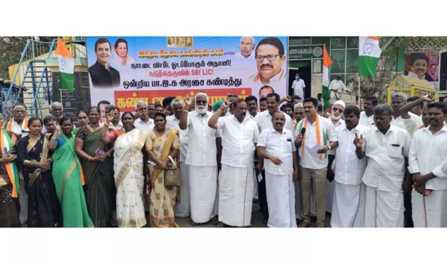 பண்ருட்டி நகர காங்கிரஸ் சார்பில் கும்பகோணம் ரோட்டில் உள்ள எல்.ஐ.சி. அலுவலகம் முன்பு நகர தலைவர் முருகன் தலைமையில் ஆர்ப்பாட்டம் நடைபெற்றது. மாநில பொதுக்குழு உறுப்பினர்கள் மணி, சபியுல்லா, மாவட்ட செயலாளர் ஜெயபால், மாவட்ட துணை தலைவர் மகபூப்கான் ஆகியோர் முன்னிலை வகித்தனர். மாவட்ட தலைவர் திலகர் கலந்து கொண்டு சிறப்புரை ஆற்றினார். இதில் மத்திய அரசை கண்டித்து கோஷம் எழுப்பப்பட்டது. ஆர்ப்பாட்டத்தில் எஸ்.சி.,எஸ்.டி. மாவட்ட தலைவர் வெற்றி செல்வன், வட்டார தலைவர்கள் குலோத்துங்கன், கேசவன், நகர துணை தலைவர் பாலு, பொருளாளர் ராஜேந்திரன், நகர செயலாளர் கிருஷ்ணராஜ், துணை செயலாளர் சிவக்குமார், புதுப்பேட்டை நடராஜன், நிஷார் உள்பட பலர் கலந்து கொண்டனர்.