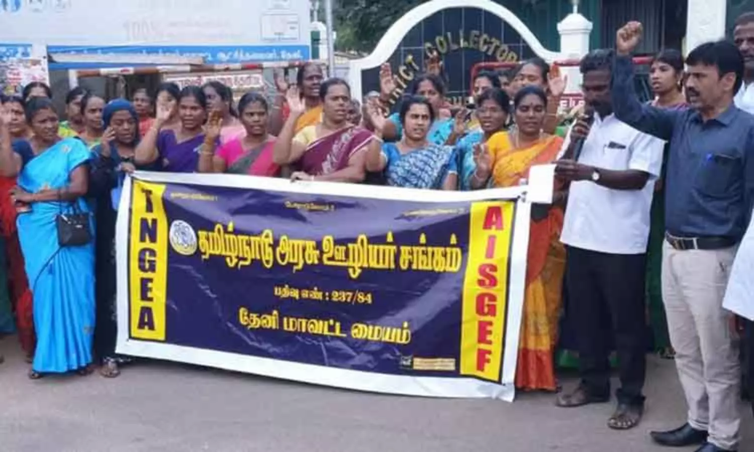 தேனியில் பல்வேறு கோரிக்கைகளை வலியுறுத்தி அரசு ஊழியர் சங்கத்தினர் ஆர்ப்பாட்டத்தில் ஈடுபட்டனர்.;