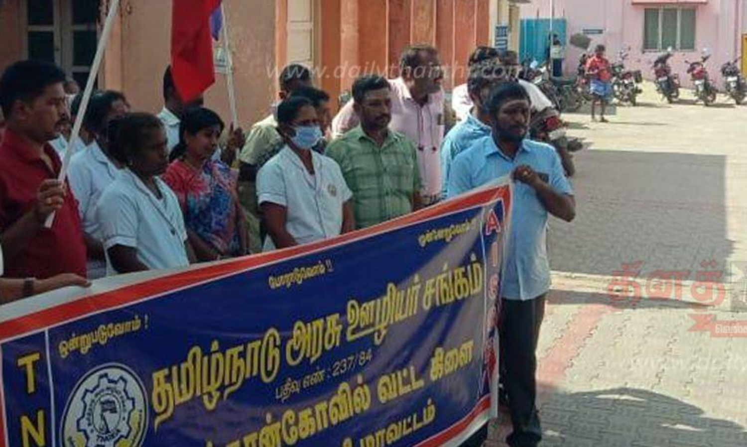 சங்கரன்கோவிலில் அரசு ஊழியர் சங்கத்தினர் ஆர்ப்பாட்டம் நடத்தினார்கள்.;