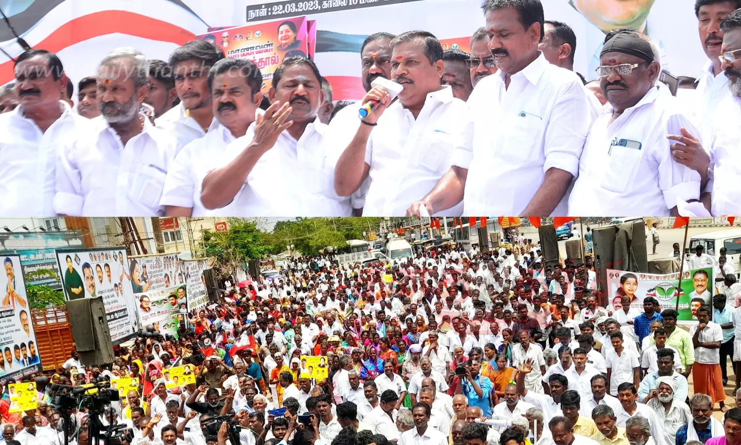 அ.தி.மு.க. சட்ட விதிகளை மாற்றம் செய்ததை கண்டித்தும், பொது செயலாளர் பதவியை பெற முயற்சிப்பதற்கு எதிராகவும், அ.தி.மு.க.வில் இருந்து எடப்பாடி பழனிசாமி வெளியேற வேண்டும் என வலியுறுத்தி மதுரை பழங்காநத்தம் பகுதியில் ஓ.பன்னீர்செல்வத்தின் ஆதரவாளர்கள் ஆர்ப்பாட்டம் நடத்தினர். அதில் மதுரை முன்னாள் எம்.பி. கோபாலகிருஷ்ணன், உசிலம்பட்டி எம்.எல்.ஏ. அய்யப்பன் உள்ளிட்ட நிர்வாகிகள், தொண்டர்கள் என ஆயிரக்கணக்கானோர் கலந்து கொண்டனர். பின்னர் அவர்கள் எடப்பாடி பழனிசாமிக்கு எதிராக கண்டன கோஷம் எழுப்பினர்.